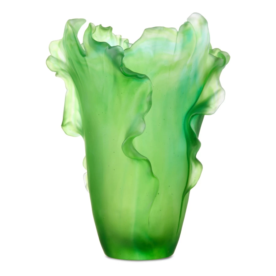 Оригинальная ваза «Мак» от бренда Decor de table станет центром любой дизайнерской композиции. Изделие, изготовленное из зелёного хрусталя, впечатляет своим роскошным внешним видом. Сложный силуэт, напоминающий распустившийся бутон мака, в сочетании с филигранной проработкой мельчайших деталей отражает высокий уровень стеклодувного мастерства. Очаровательная ваза создаст атмосферу тепла и уюта, напоминая о летних деньках. Модель можно использовать по прямому назначению или в качестве самостоятельного декоративного предмета.