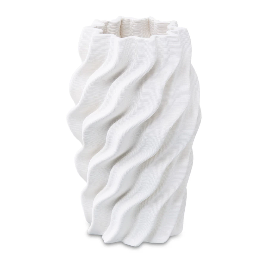 Ваза «Волны» от бренда Decor de table – изысканный предмет декора, в котором стильная динамичность гармонично уравновешивается вневременной элегантностью. Модель выполнена из керамики высшего сорта. В этом экологичном материале дизайнеры воплотили сложную форму, напоминающую застывшие в движении волны.
