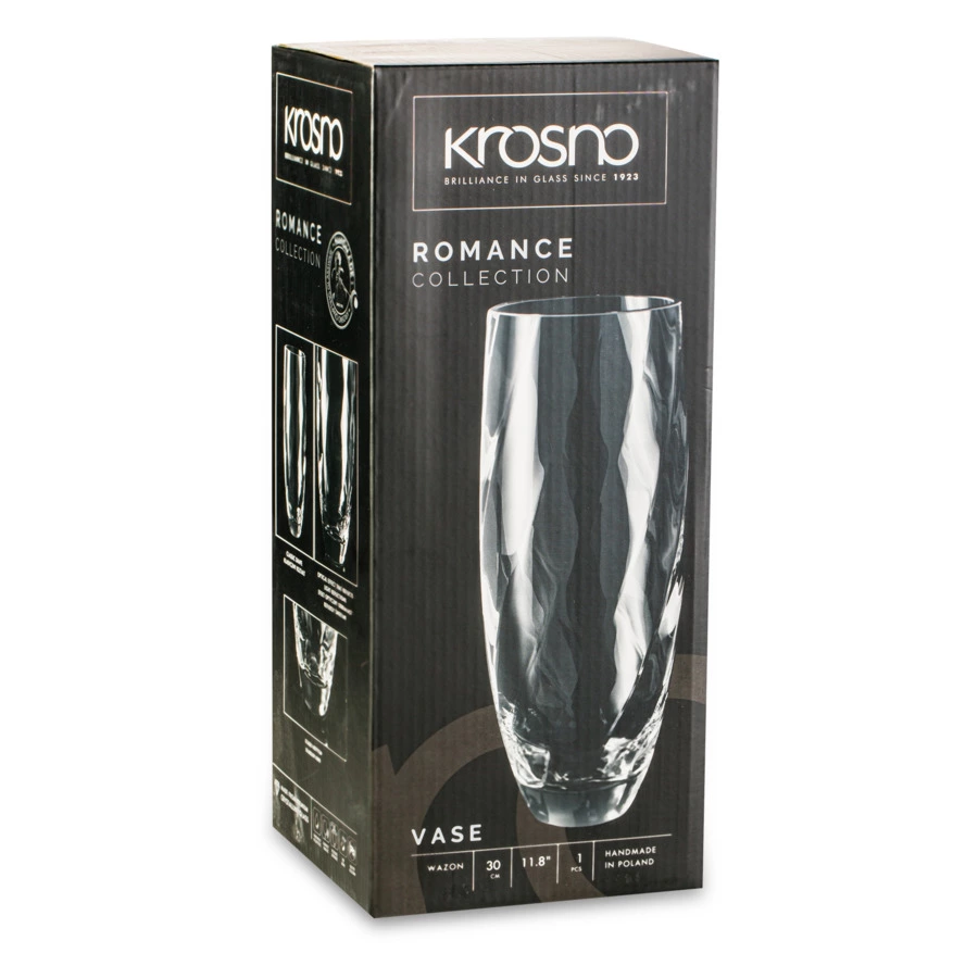 Ваза из коллекции «Романтика» эффектно подчеркнёт красоту цветов. Изделие имеет устойчивое дно, поэтому подходит для тяжёлых букетов и интерьерных композиций. Предмет украшен изящным витым узором, благодаря которому ваза переливается на солнце. Модель, изготовленная вручную, выполнена из бесцветного хрустального стекла. Прочный материал со светоотражающими свойствами не тускнеет, он устойчив к появлению сколов и царапин. Ваза польского бренда Krosno будет уместно смотреться как в классическом, так и в современном интерьере.