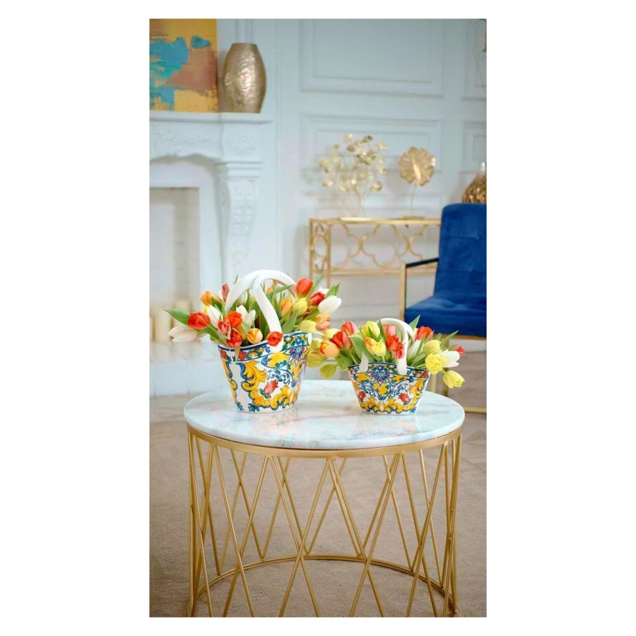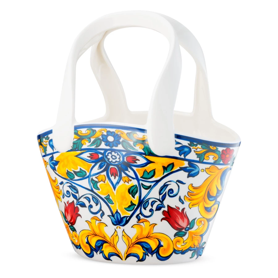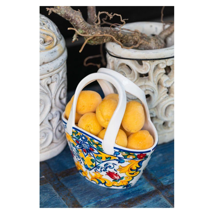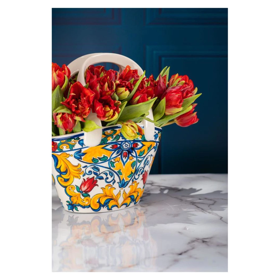 Уникальный дизайн ваз в виде сумочки непременно привлечет к себе внимание. Сицилийский орнамент этой вазочки несет тепло солнца чудесного острова Италии. Украшайте ее цветами, фруктами или просто наслаждайтесь изяществом линий этого произведения искусства.