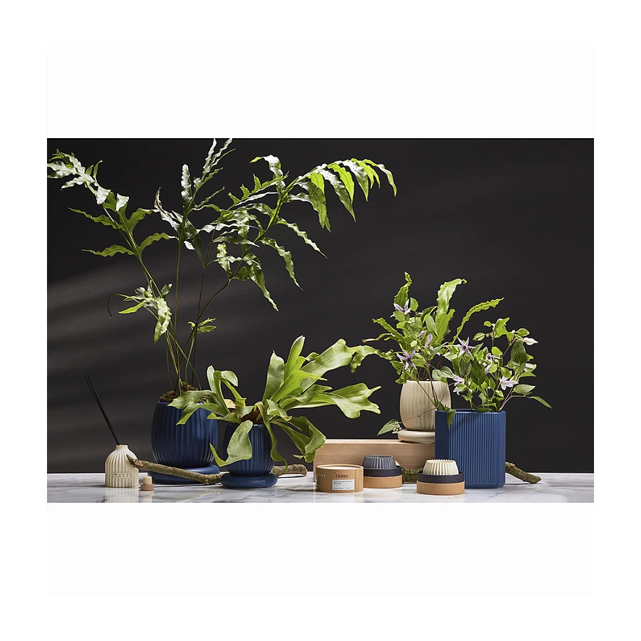 Ваза темно-синего цвета из коллекции Edge подойдет как для букетов из живых цветов, так и для сухоцветов. Простая форма вазы с фактурными гранями будет сочетаться с другими предметами из этой же коллекции, позволяя создавать интересные интерьерные композиции. Изделие выполнено из доломита, устойчивого к сколам, легкого и экологически чистого материала, снаружи и внутри покрыто матовой глазурью.