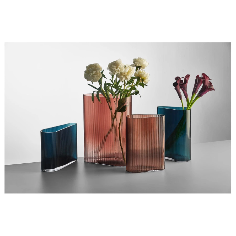 Ваза от Nude Glass — результат искусной работы высококвалифицированных мастеров, сочетания традиций и инновационных технологий. Модель изготовлена из прочного бессвинцового хрустального стекла бирюзового оттенка. Обтекаемая форма и чистые линии формируют вневременной элегантный силуэт. Ребристая фактура обеспечивает оригинальный оптический эффект, визуально «размывая» стебли. Молодой турецкий бренд работает в концепции минимализма и создаёт стильные изделия с узнаваемым характером. Благодаря лаконичному дизайну ваза из коллекции «Туман» гармонично встраивается в современное пространство и не перетягивает на себя внимание от цветочной композиции.