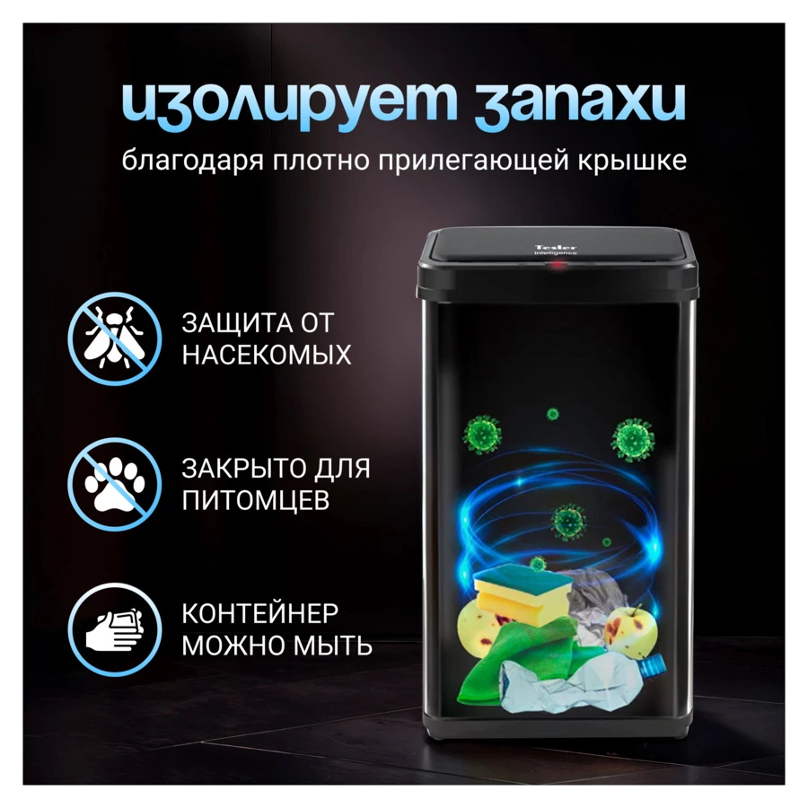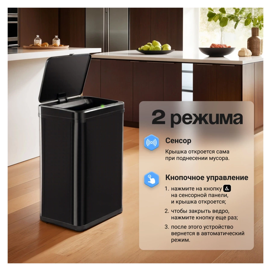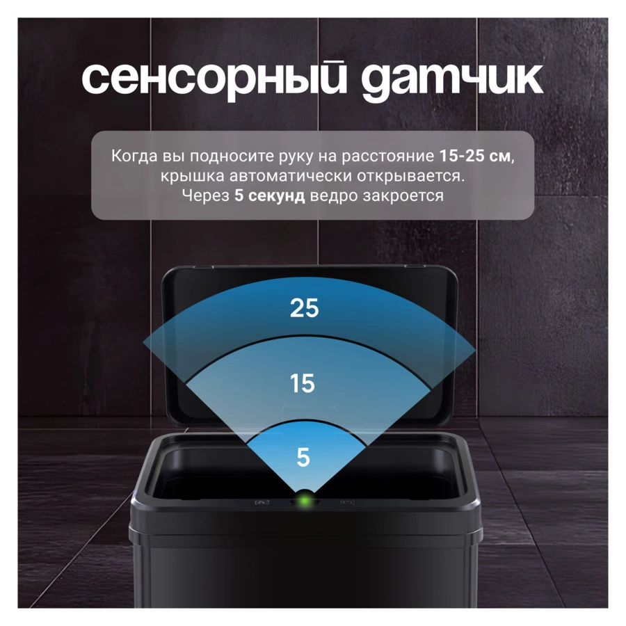 Больше никаких неприятных запахов: благодаря плотно прилегающей крышке содержимое внутри ведра изолировано. Бесконтактная работа делает прибор незаменимым везде, где есть необходимость утилизации отходов: дома, на даче, в офисе, магазине и других помещениях, таких как салоны красоты или медицинские центры. Индикаторы на дисплее позволят отслеживать актуальную информацию об устройстве, в том числе низкий уровень заряда батарей.