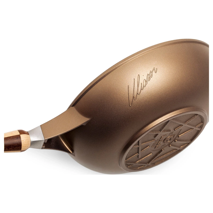 Сковорода-вок итальянского бренда Luchetti была создана совместно с известным шеф-поваром Мауро Улиасси. Вдохновившись полученным результатом, обладатель 3 звёзд Мишлена оставил свой автограф на поверхности изделия.