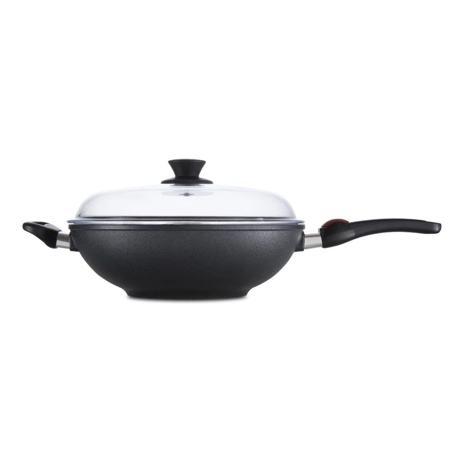 Сковороды и жаровни серии Titanium 2000 – уникальное пятислойное покрытие премиум класса, алюминиевый сплав, ручное литьё. Толщина дна 10 мм гарантирует отличное тепловое распределение по всей площади изделия и отсутствие деформации при нагревании. Специальное усиленное антипригарное покрытие с частицами титана (60 микрон) не даёт пригореть приготавливаемому блюду. Быстрая и лёгкая чистка. Можно использовать в духовом шкафу. Не рекомендуется мыть в посудомоечной машине.
