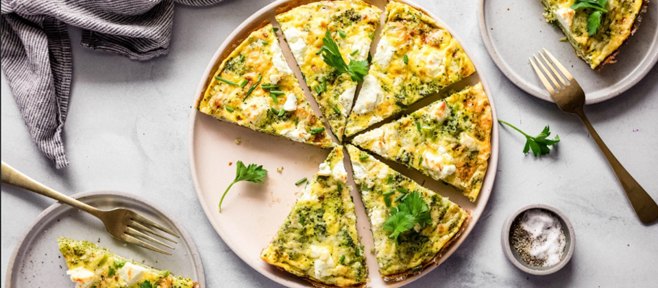 - Форму смазать сливочным маслом, положить брокколи, посыпать сыром и залить яйцами.