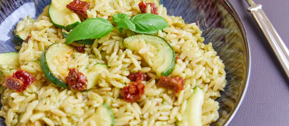 - Пасту орзо отварить по инструкции на упаковке.