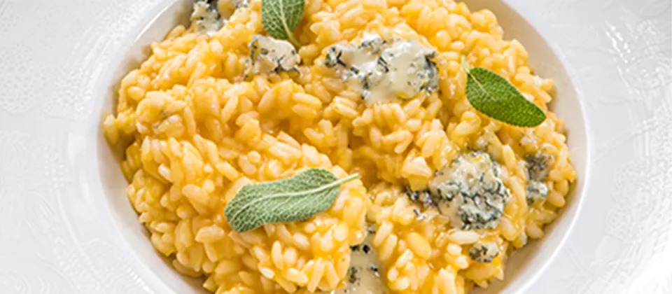 - Когда рис будет практически готов, добавить тыквенное пюре , перемешать и снять ризотто с огня.