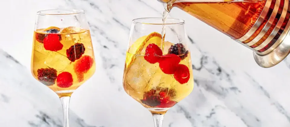 - В бокалы добавить лед, свежие ягоды и разлить сангрию.
