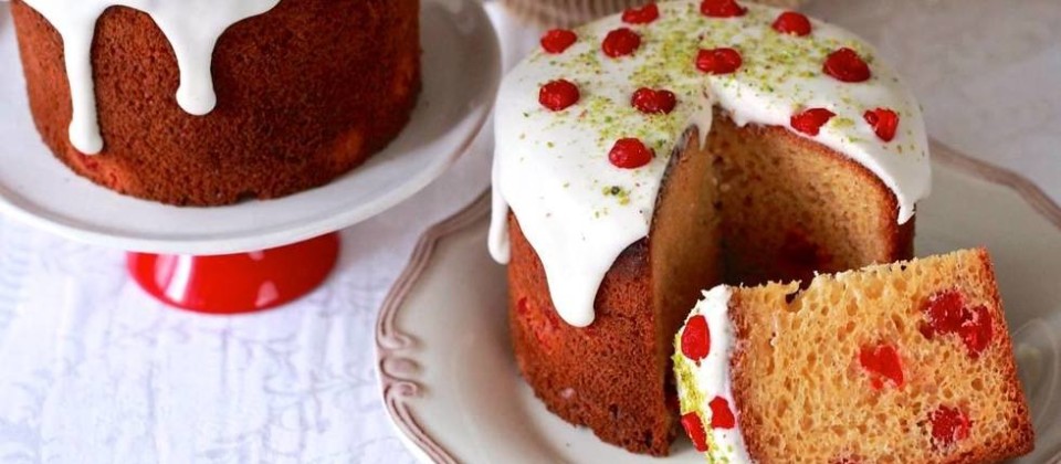- Сахарную пудру перетереть с водой до состояния глазури. Покрыть глазурью остывший кулич и украсить посыпками.